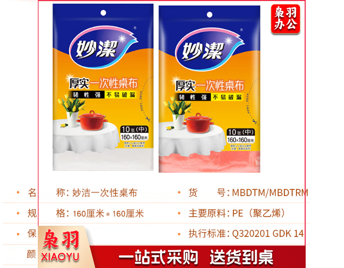 妙洁 一次性桌布厚实台布10张装 中号颜色随机发送