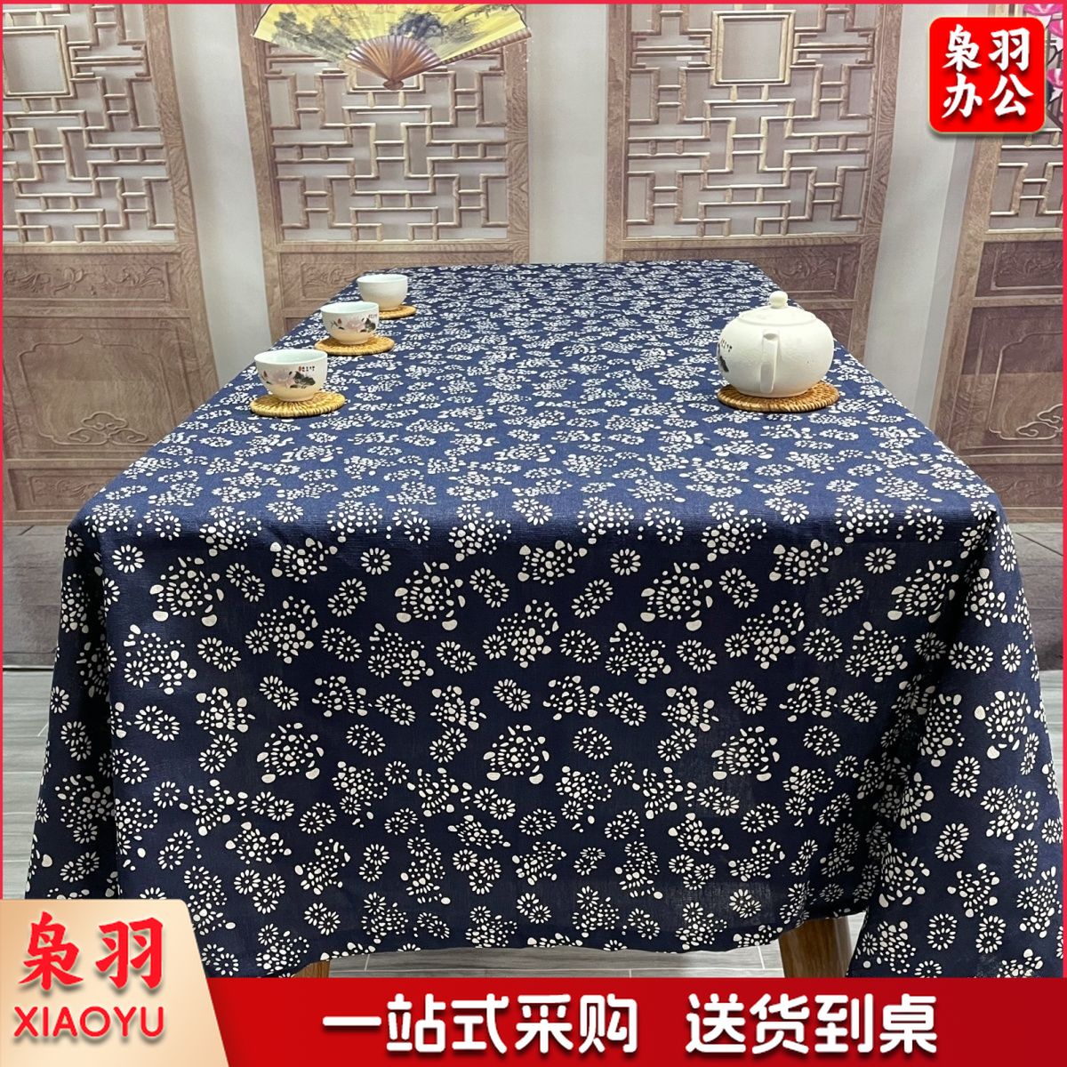 乌镇蓝印花布桌布中国民族风棉麻青花布艺中式餐桌茶几台布长方形