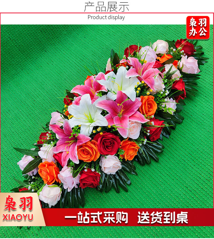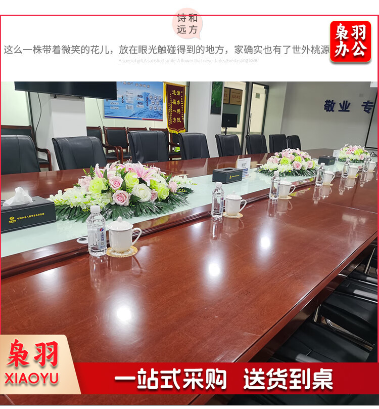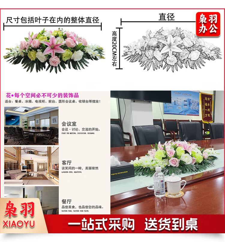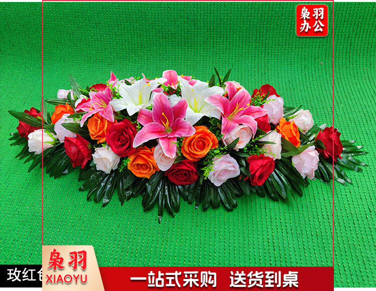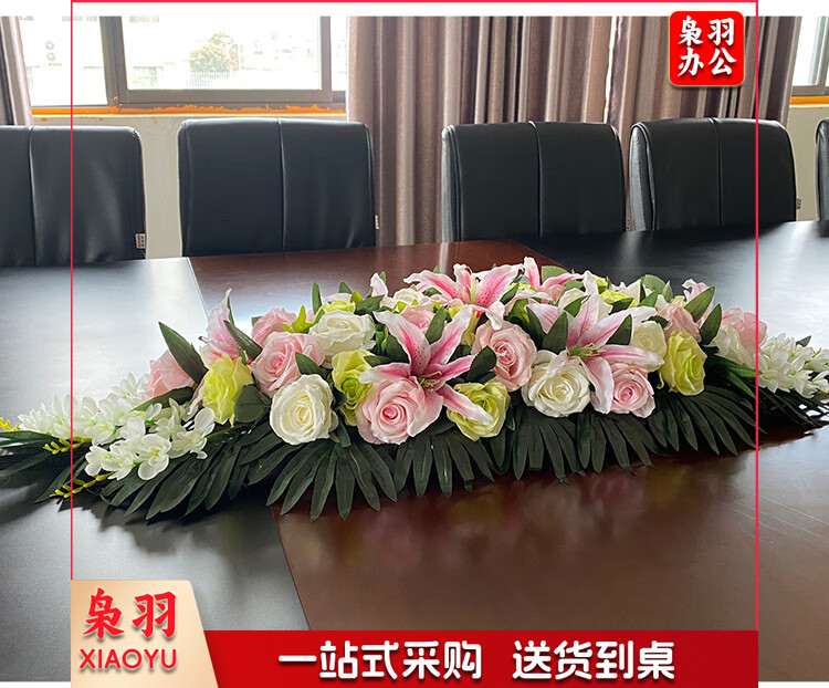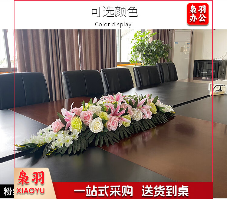会议室桌花 摆花 仿真花 桌面假花 会议桌花 60cm 粉绿色