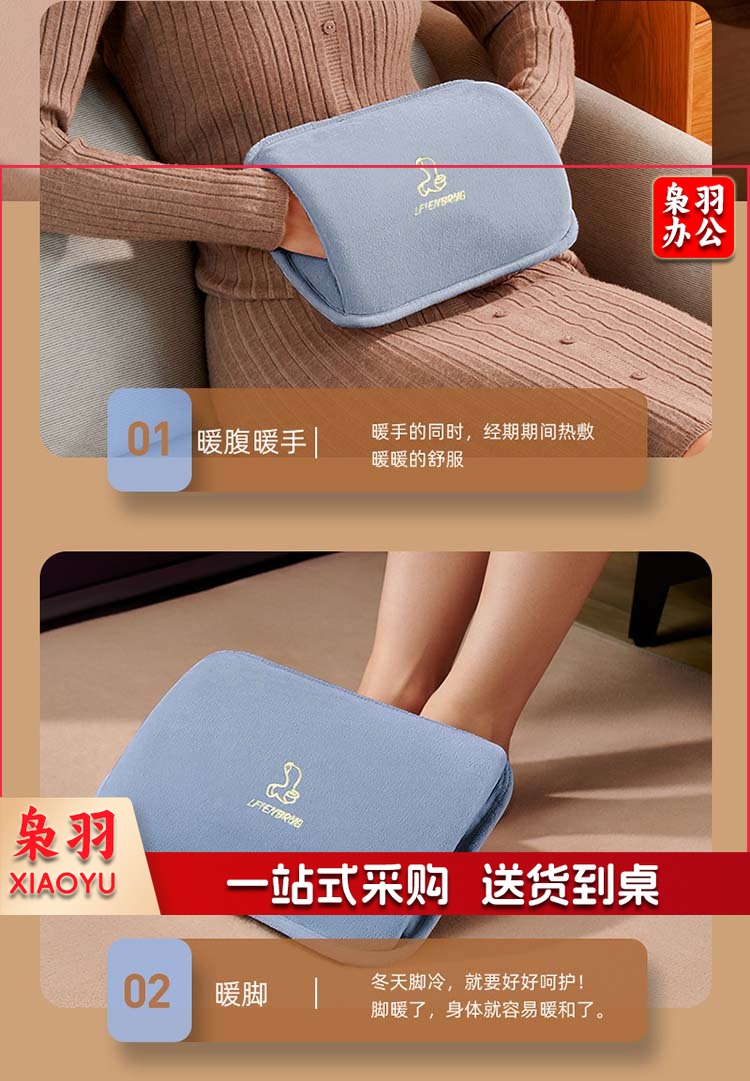 志高(CHIGO)热水袋暖水袋 充电暖手宝暖宝宝 智能防爆 双插手亲肤绒 天空青蓝