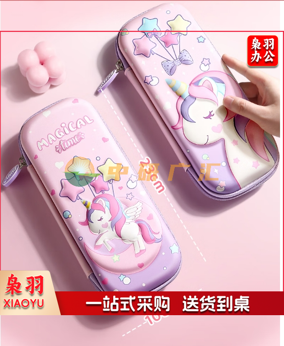 EVA笔袋/月亮独角兽 双层大容量3D立体图案文具盒小学生女孩儿童铅笔盒轻盈防水幼儿园可爱学生文具