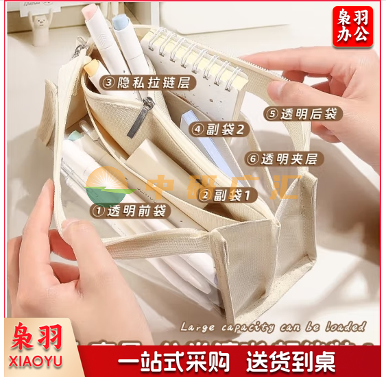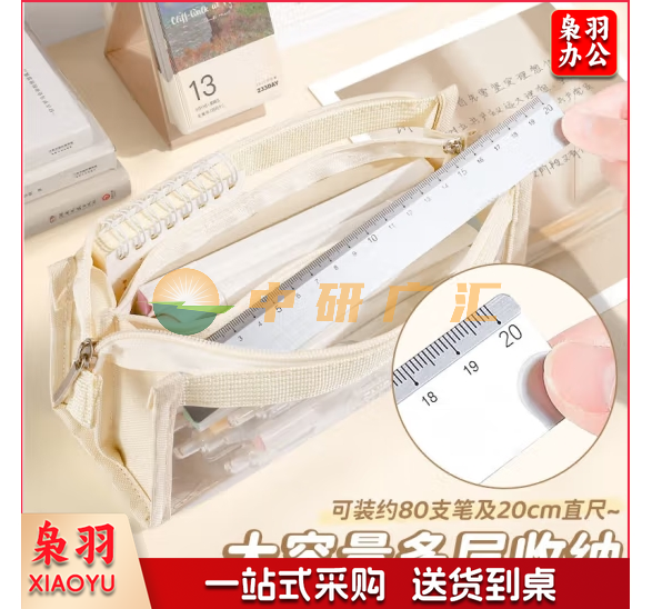 米白色6层透明笔袋 大容量ins高颜值女孩款网红高考文具盒中学生初中生女生版文具用品小学生铅笔盒