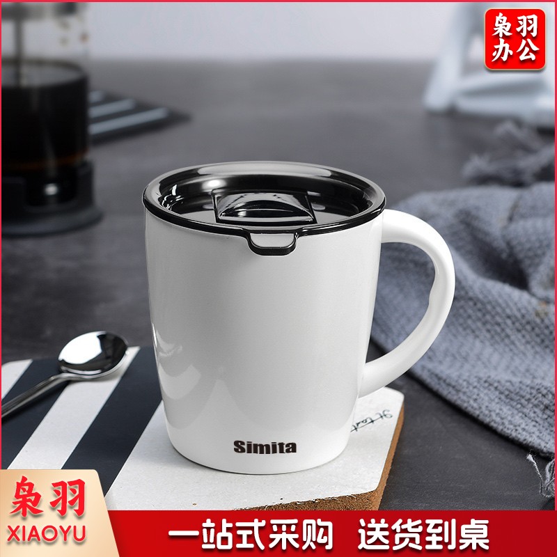 施密特Simita不锈钢马克杯咖啡杯带盖男女士学生简约文艺大容量喝水咖啡办公家用喝水杯子 白色