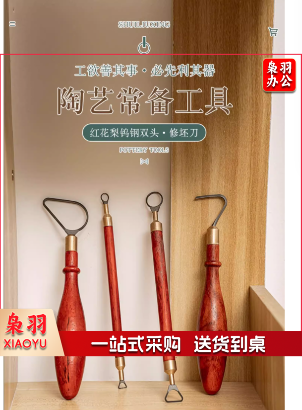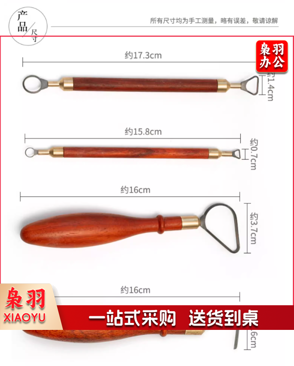 陶艺工具泥塑刮坯修坯工具肌理环形刀红花梨钨钢双头修坯刀