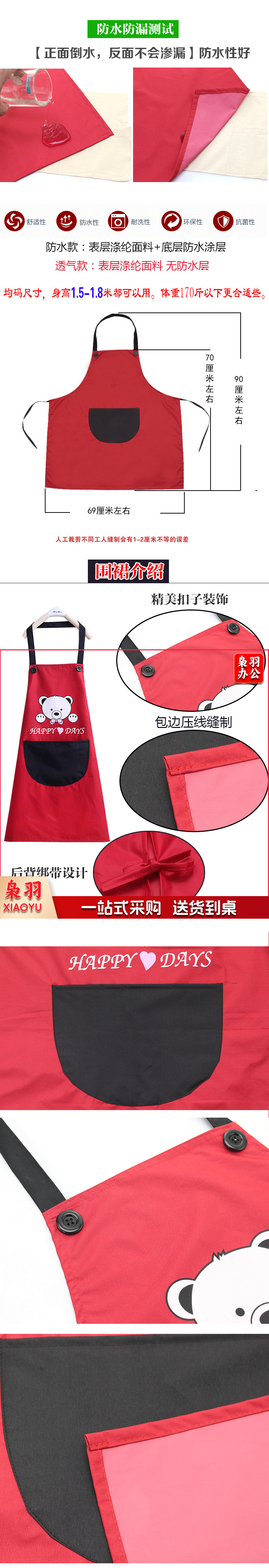 防水防油厨房围裙可爱韩版时尚男女成人工作服 尺寸约为69*70*90