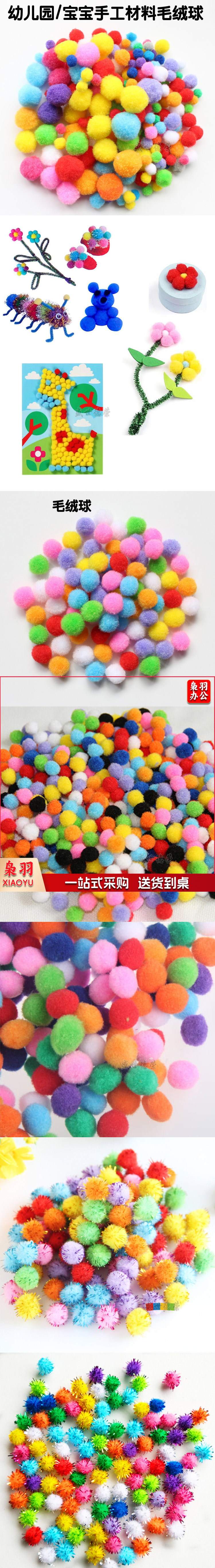 彩色毛球绒球 毛毛球 幼儿园diy手工材料 毛绒球 直径约0.8cm、1cm、1.5cm、2.5cm、3cm