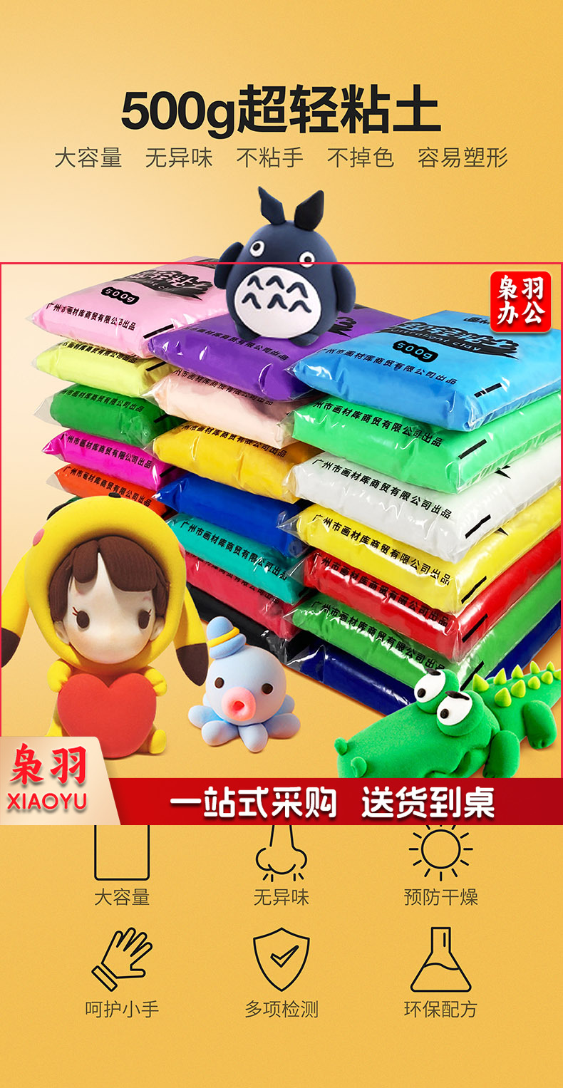 画材酷100克粘土儿童大包装白色黑色100g袋袋装24色轻粘土彩泥太空泥儿童手工制作幼儿园diy手工材料