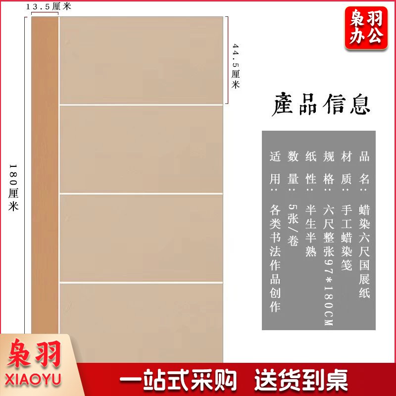 仿古复古宣纸(米黄色97*180cm)5张/包 蜡染笺六尺整张国展半生熟宣纸毛笔书法作品创作专用宣纸一包