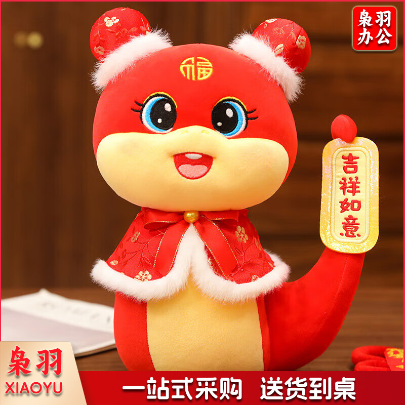 蛇宝宝2025蛇年吉祥物公仔摆件生肖蛇玩偶娃娃新年会礼物 24厘米(带吸盘)