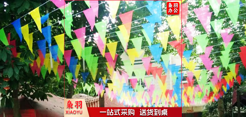 彩旗三角串旗小彩旗三角旗小彩旗户外定制旗幼儿园五彩旗公司庆典布置装饰彩旗 大号三角旗18*28CM(120面旗子 约60米)