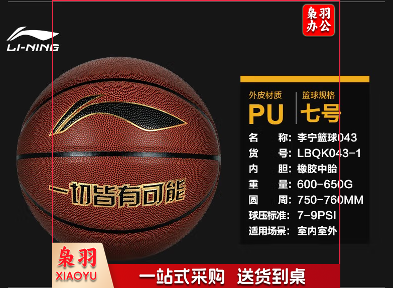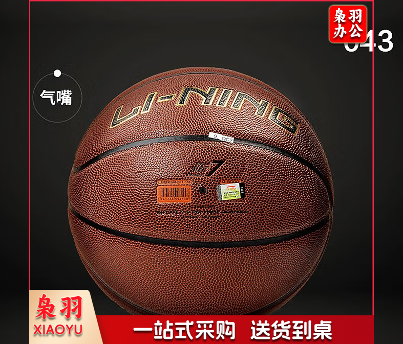 李宁 LI-NING CBA联赛官方比赛篮球室内外儿童成人7号PU蓝球 LBQK443-1