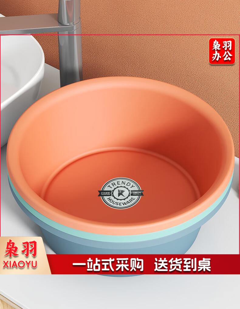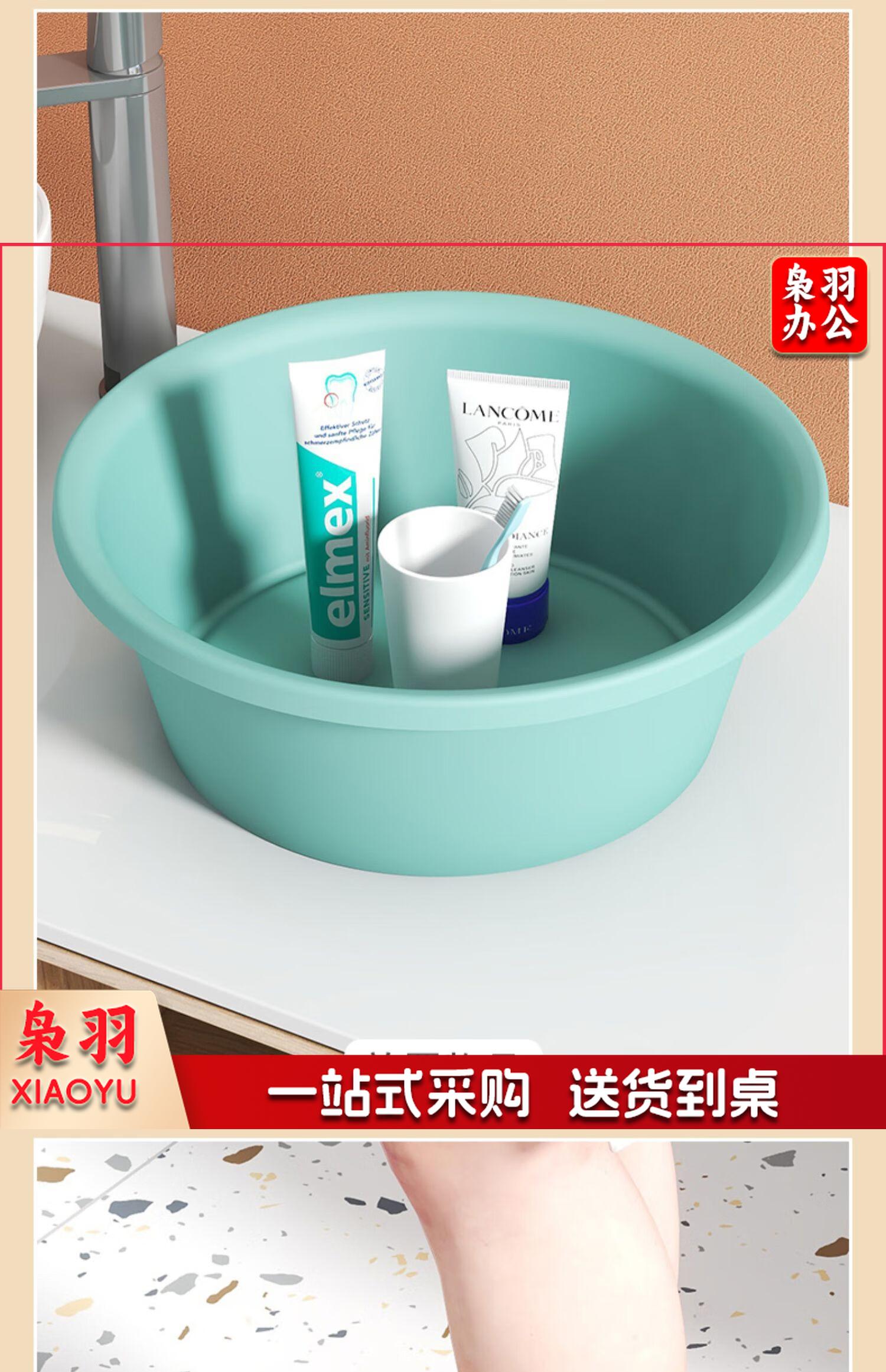 新款加厚洗脸盆家用塑料学生宿舍可爱脸盆磨砂防滑洗衣盆洗菜盆子 蓝色大号(直径32cm高12.5cm)蓝色大号直径32cm高12.5cm)