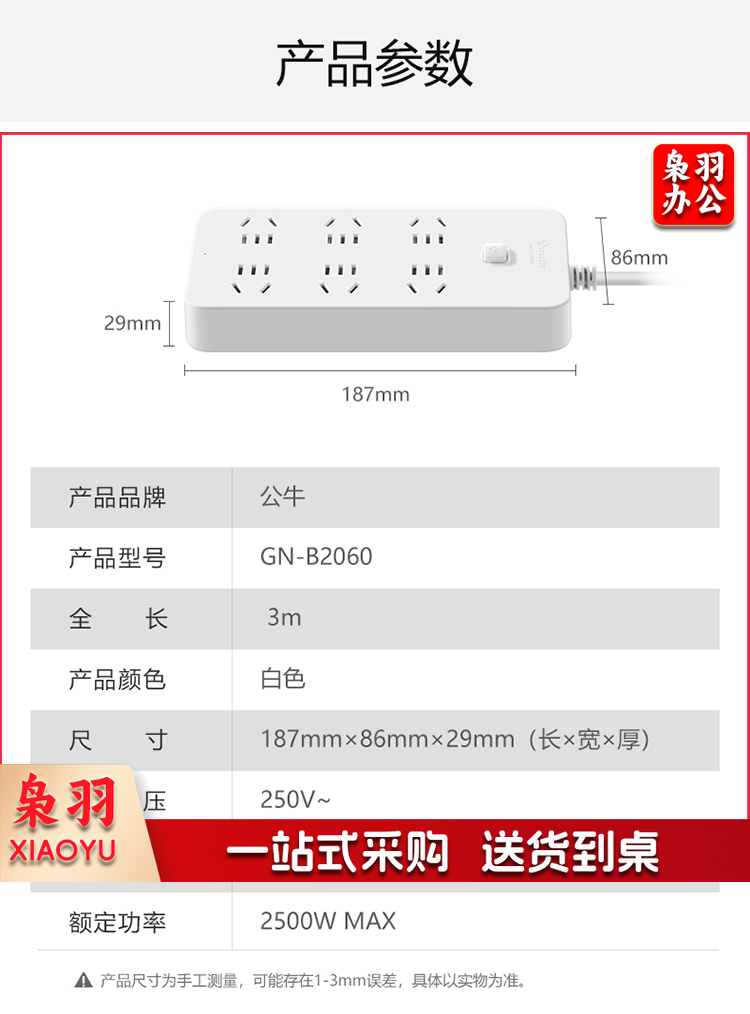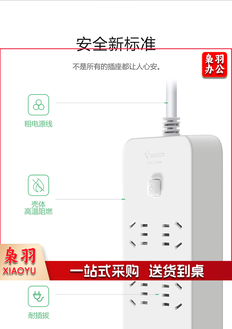 公牛(BULL)新国标插座 GN-B2060 6位总控全长 3米