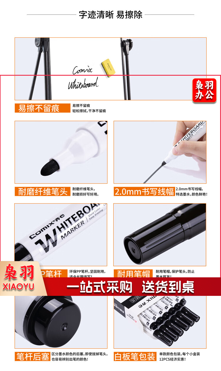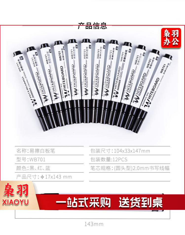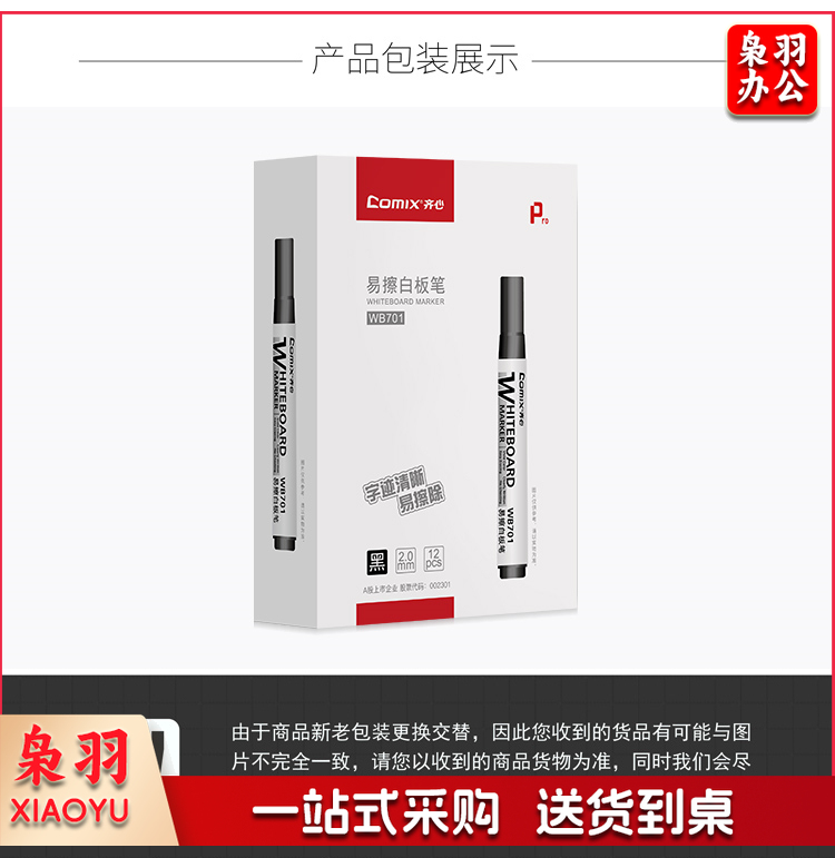 齐心/COMIX WB701 色泽明亮可擦易擦白板笔 黑色 ( 单位:盒)
