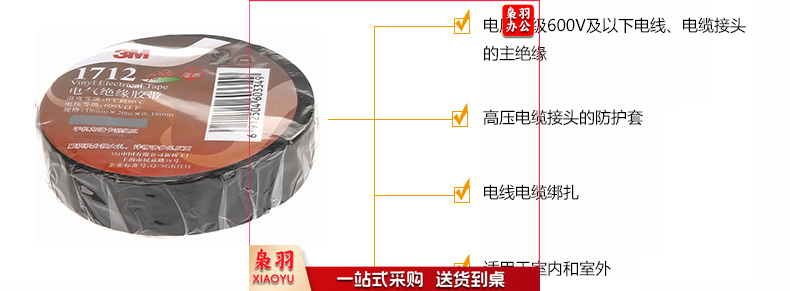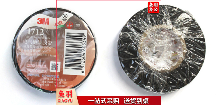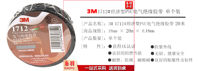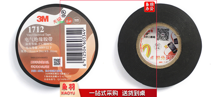 3M 电工胶带,1712# 18mm*20m*0.18m 黑色 1卷装(卷)