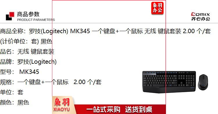 罗技/Logitech MK345 无线键鼠套装 单位:套