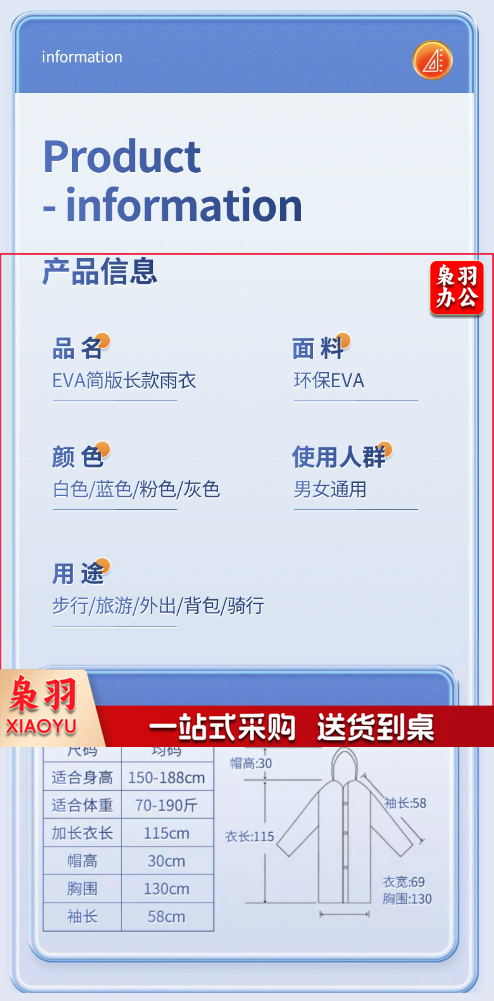 成人便携式长款雨披 男女加厚时尚旅行户外徒步电动车防汛雨衣 非一次性一体式连帽雨衣