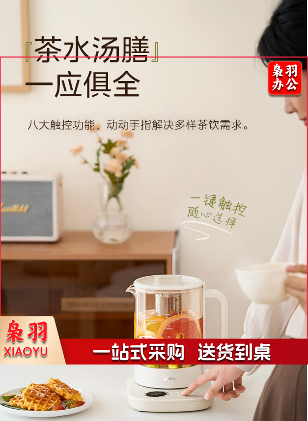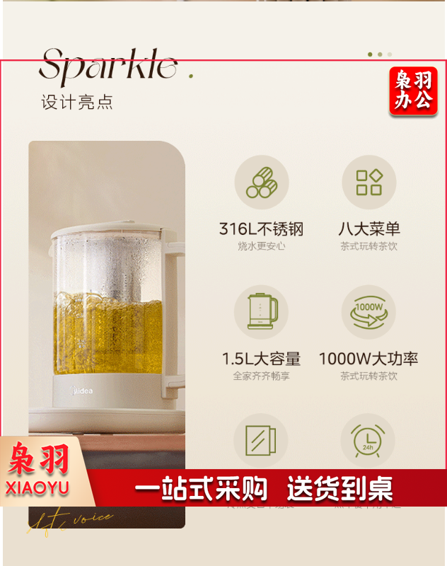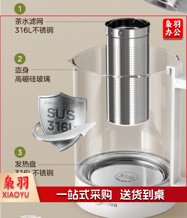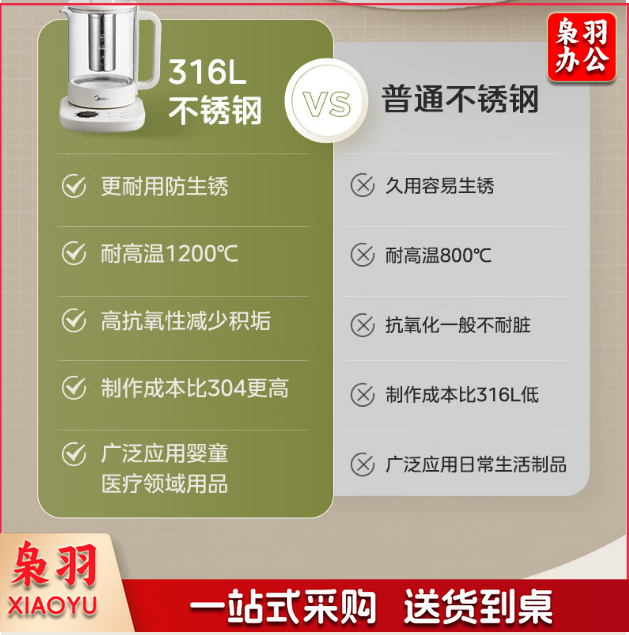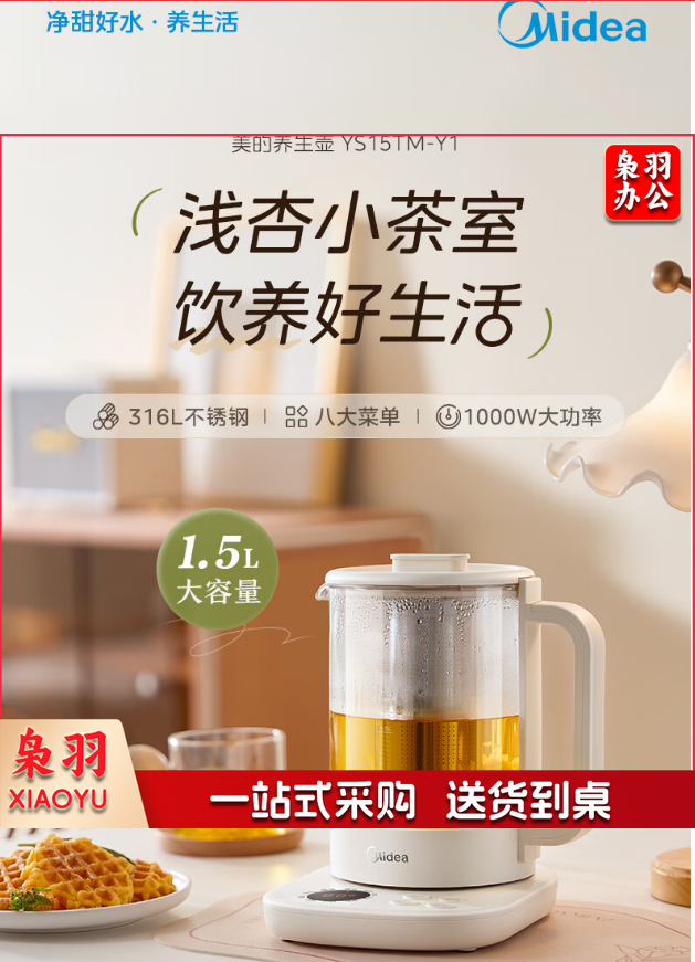 美的(Midea) 316L不锈钢1.5L烧水壶1000W大功率 24小时预约 12小时多段控温电热水壶 煮茶器YS15TM-Y1