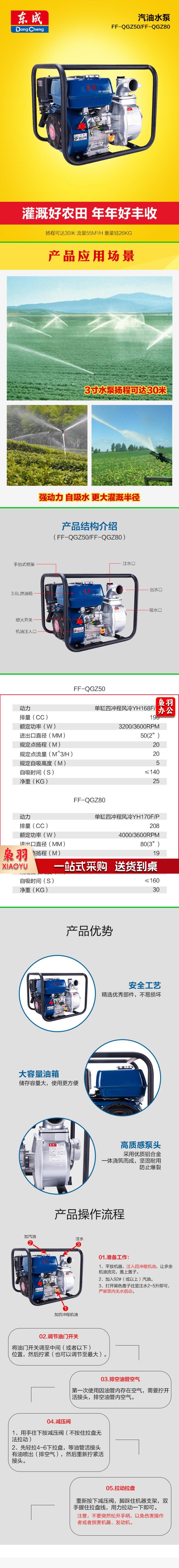 东成 FF-QGZ50汽油机抽水泵组防汛水泵自吸水泵
