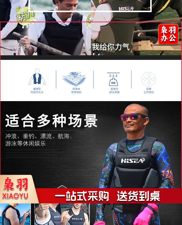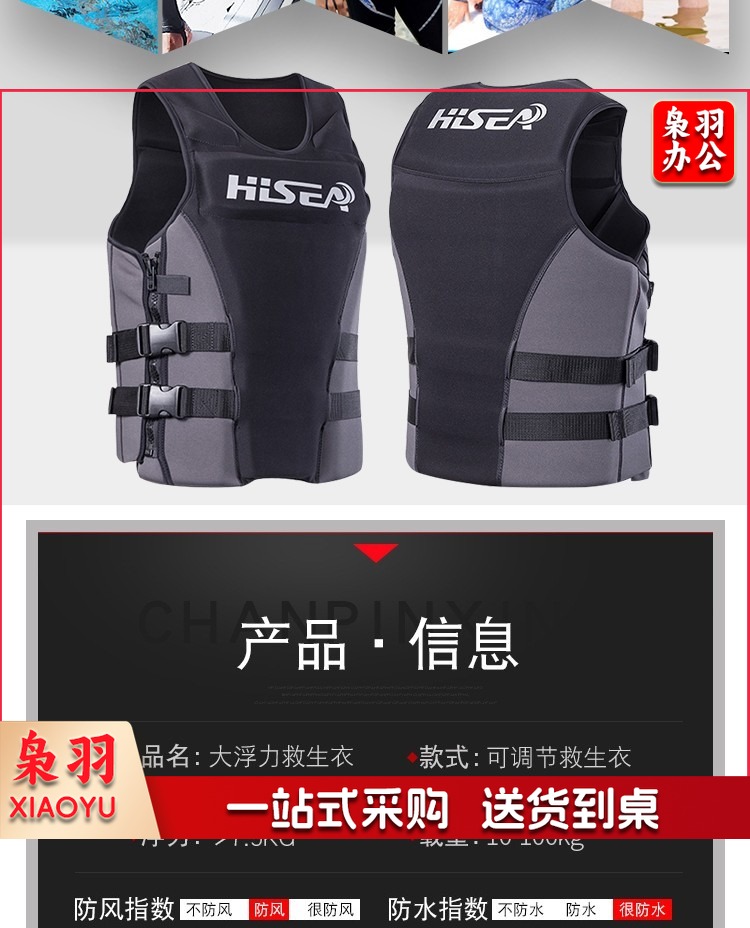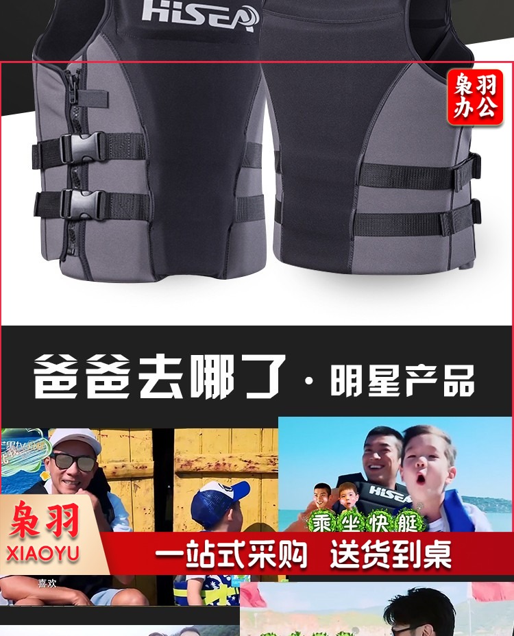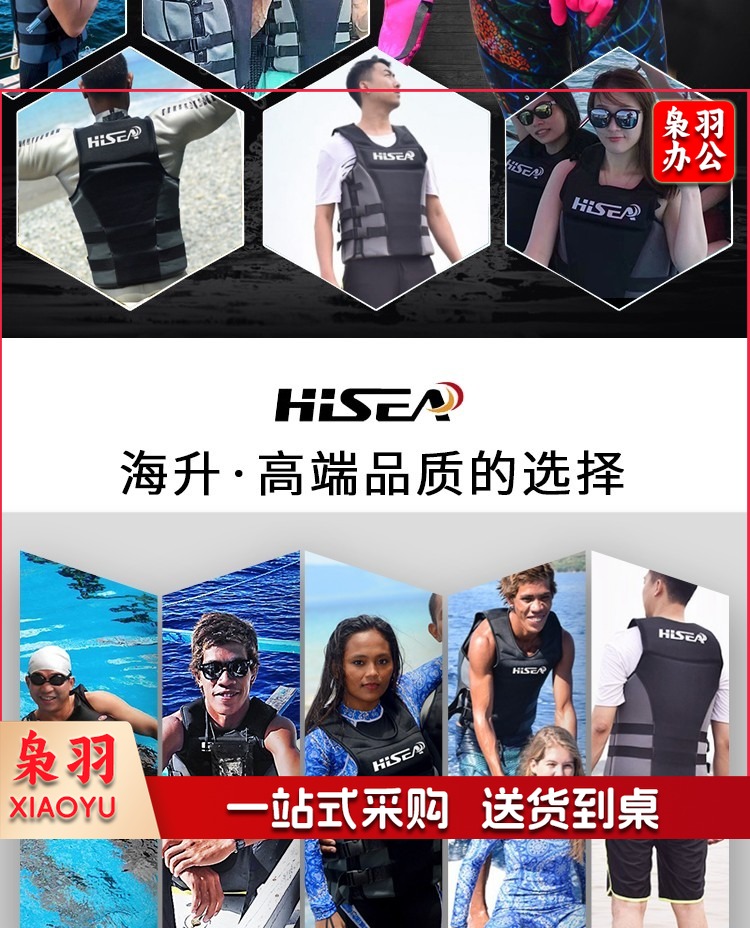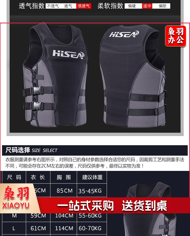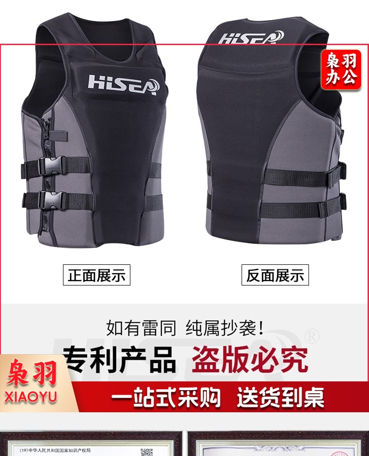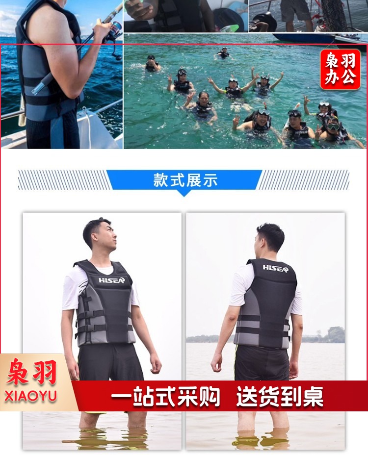 HiSEA专业救生衣成人救生服国标高品质救生马甲防汛物资游泳船用漂流背心便携全尺大码浮力衣 黑灰 L码(55-65kg)