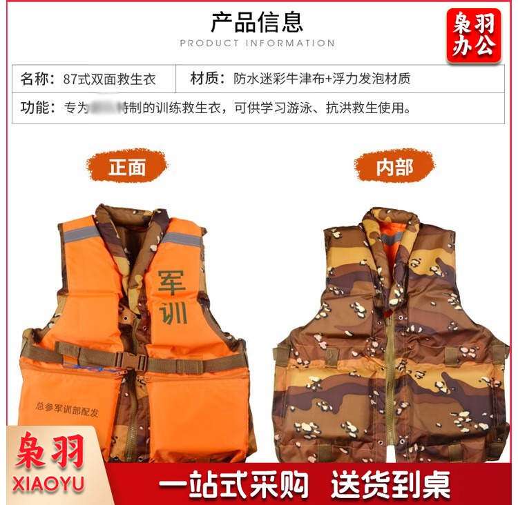 成人救生衣背心抗洪抢险防汛船用带口哨反光条 87式救生衣 双面