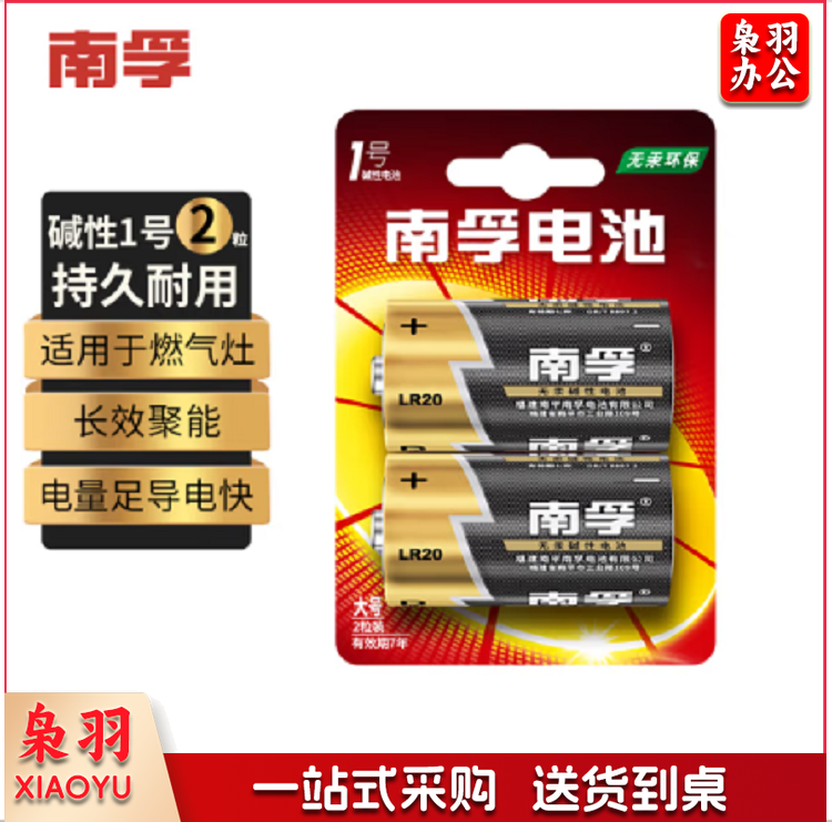 南孚 LR20-2B 1号碱性电池2粒 大号电池 适用于热水器/煤气燃气灶/手电筒/电子琴/挂钟等 2粒/卡