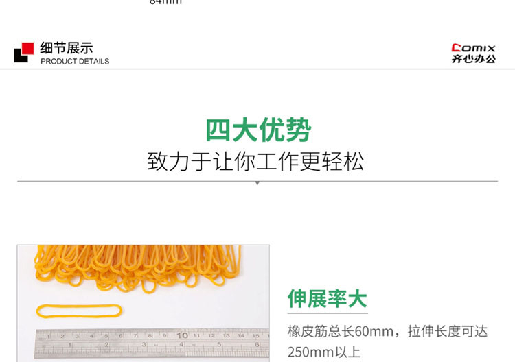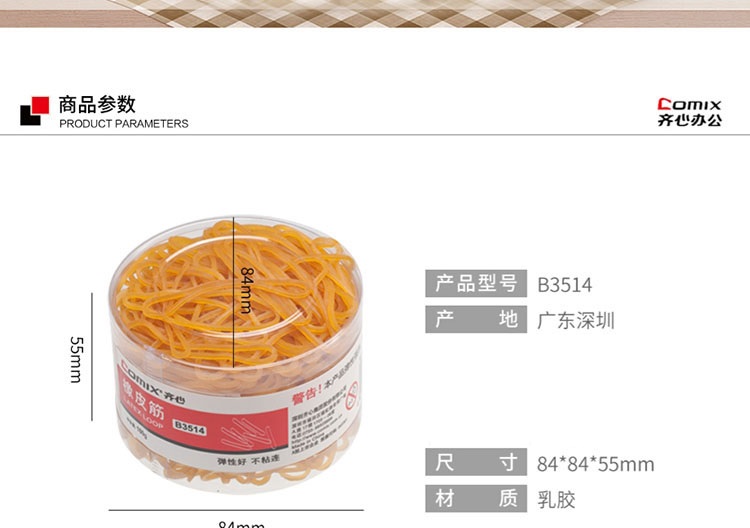 齐心/COMIX B3514 橡皮筋 100g/筒 黄色 单位:筒