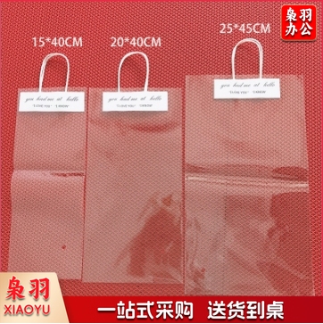ins风透明手提袋OPP胶袋教师节快乐LOGO不干胶塑料袋鲜花包装(25cmx45cm10个装)