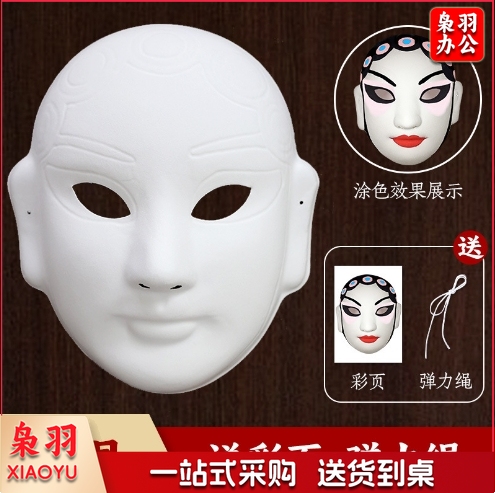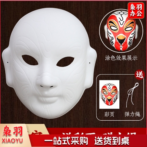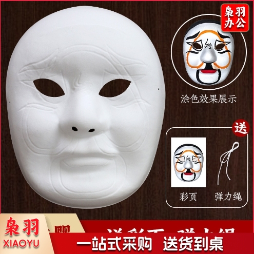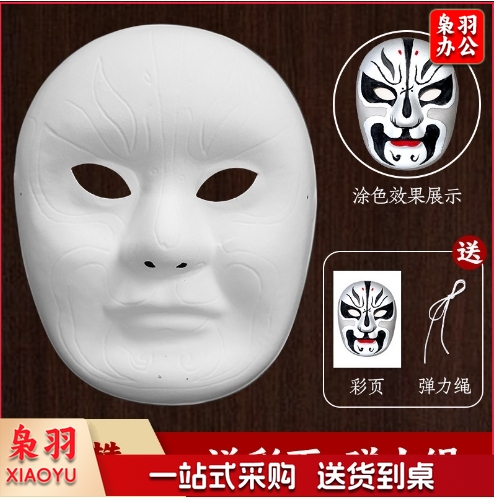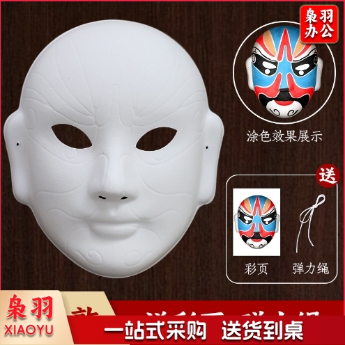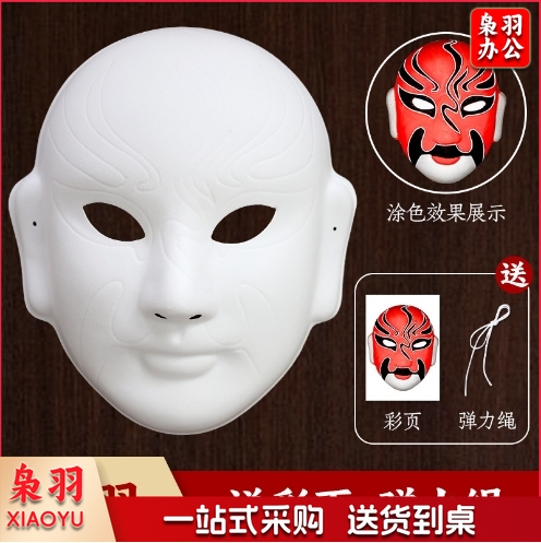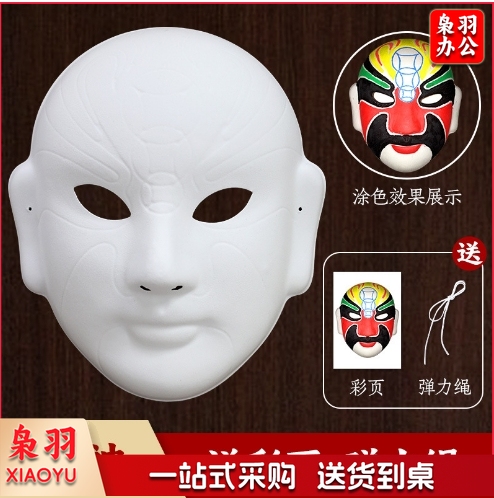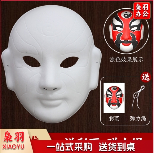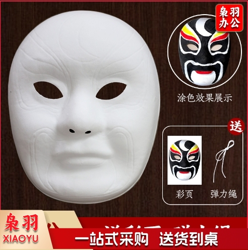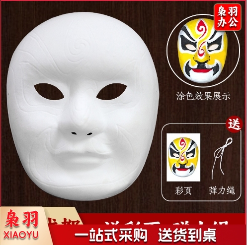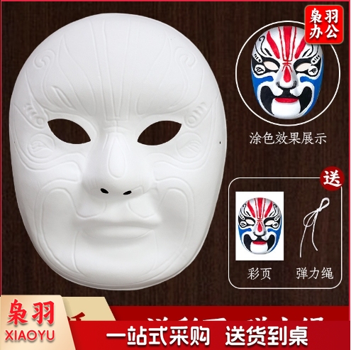 京剧脸谱面具儿童创意手工DIY手绘白坯面具中式非遗脸谱专用道具(单独面具,彩页,弹力绳)