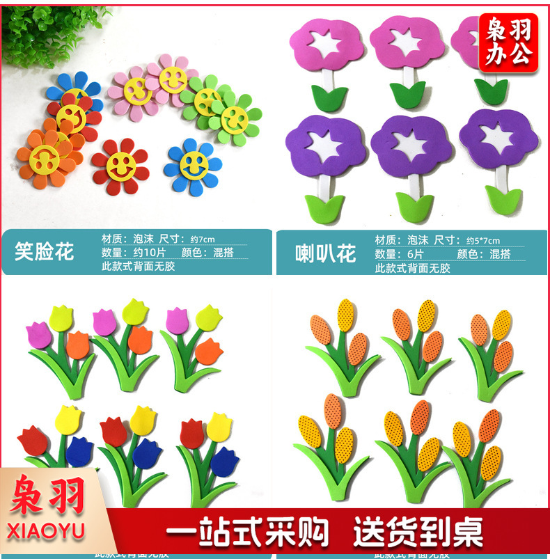 幼儿园装挂饰材料DIY立体墙贴 笑脸小花朵创意墙贴组合(款式备注或咨询客服)