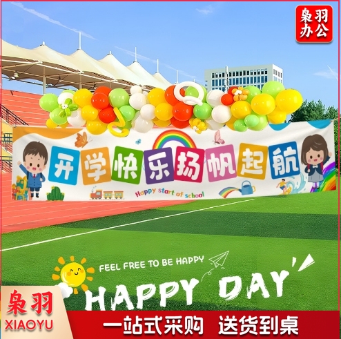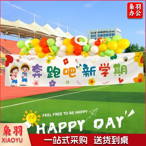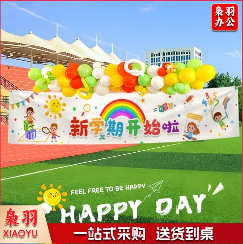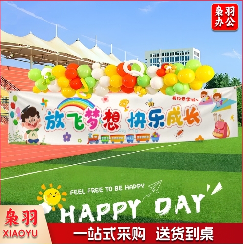 幼儿园开学季挂布教室黑板开学典礼装饰横幅背景布仪式感场景布置四角打孔(四角打孔四角打孔300cmx60cm)
