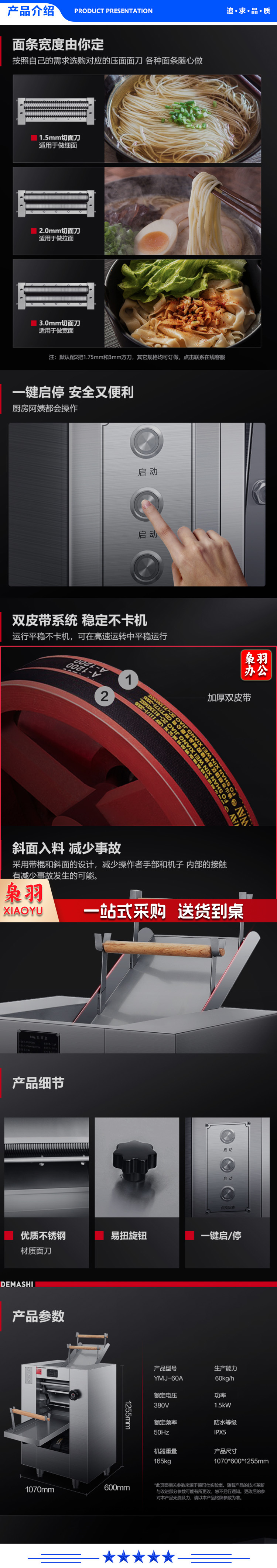德玛仕 DEMASHI JCQ-YMJ60A 压面机 商用电动 挂面饺子面皮机全自动面条机 60KG/H全封闭 两把面刀