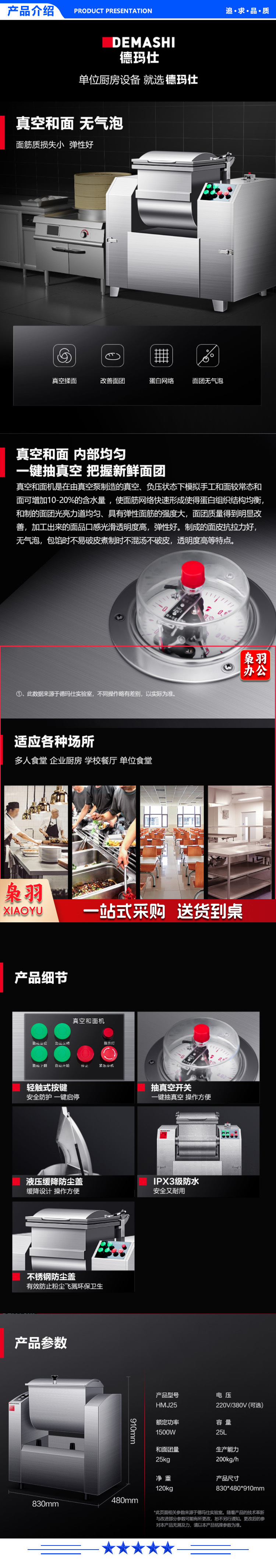德玛仕 DEMASHI HMJ25 和面机 商用大容量 揉面搅面厨师搅拌机 和面量200KG/H