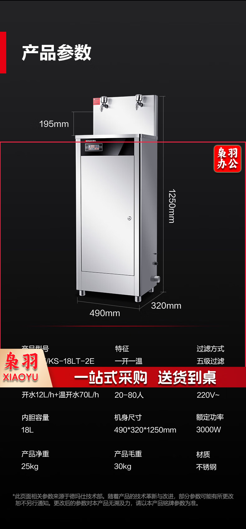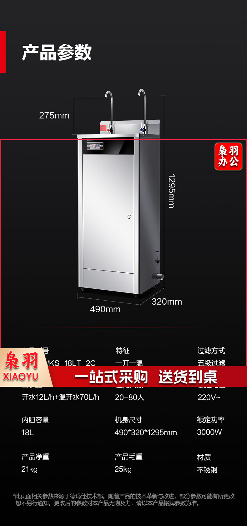 德玛仕(DEMASHI)商用直饮开水器 商用烧水器五级过滤电热开水机大容量开水炉 GK-2C/KS-18LT-2C (弯头款 )