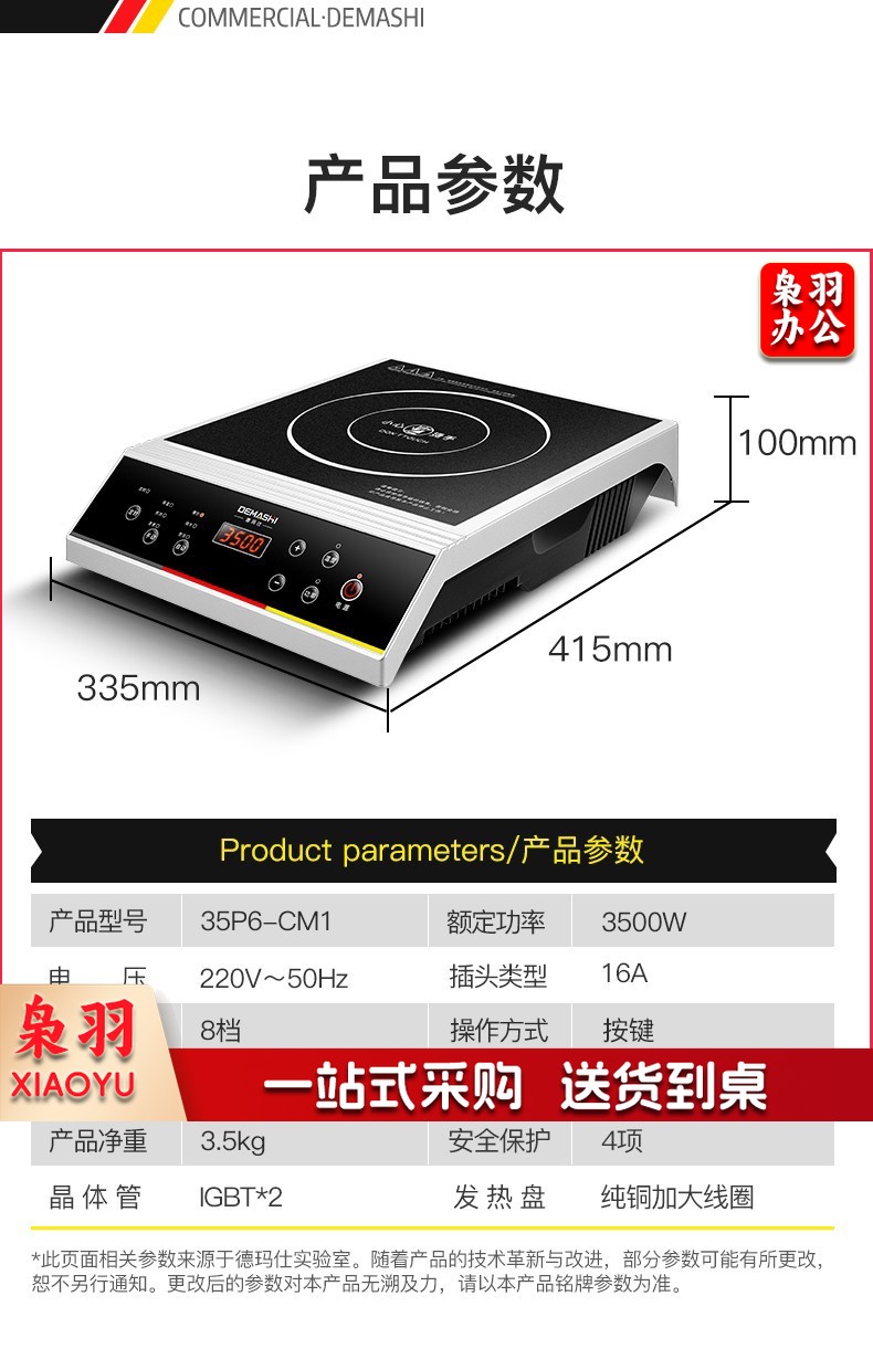 德玛仕(DEMASHI)35P6-CM1 商用电磁炉大功率 【3500W丨平面八档】