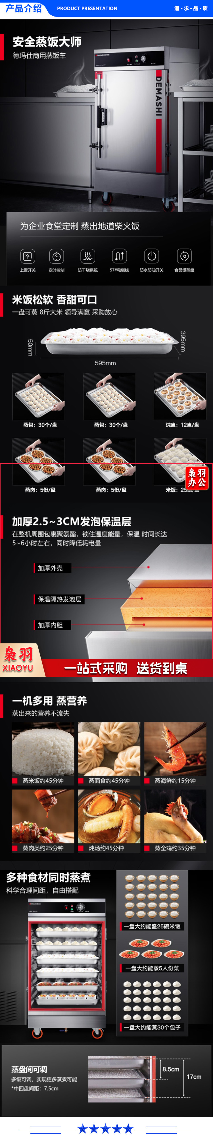 德玛仕 DEMASHI KZ-125 蒸饭柜 商用 蒸饭箱 蒸饭机 蒸箱 食堂单位学校 安全防干烧蒸柜蒸包炉大容量 12盘上置定时380V 供200人