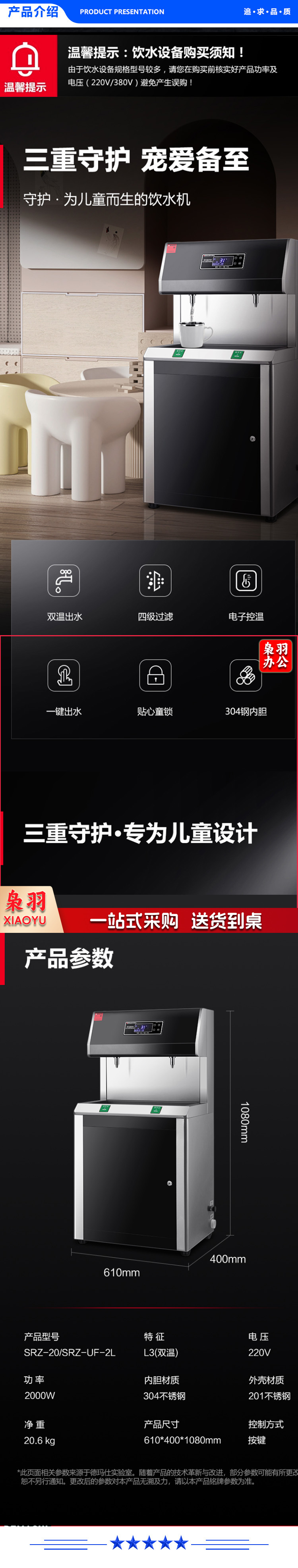 德玛仕 DEMASHI SRZ-20/SRZ-UF-2L L3 饮水机 学校商用净水机 商用烧水机 不锈钢直饮水机