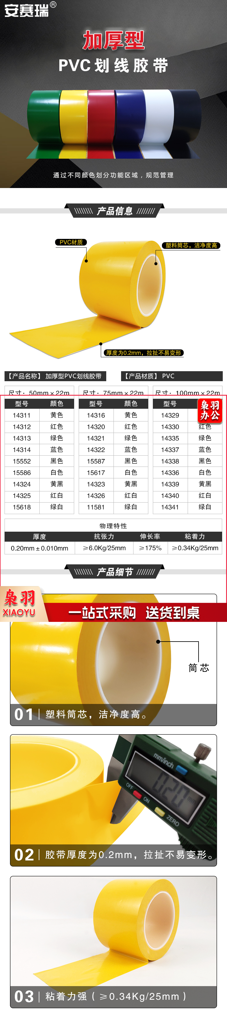 安赛瑞14340地板划线胶带红白100mm*22m(卷)