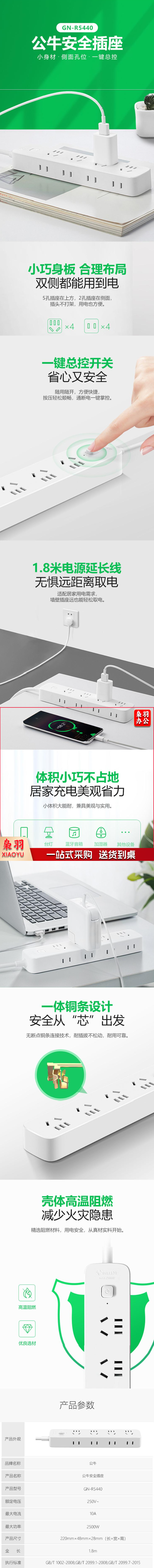 公牛GN-R5440 新国标插座 8位总控1.8米
