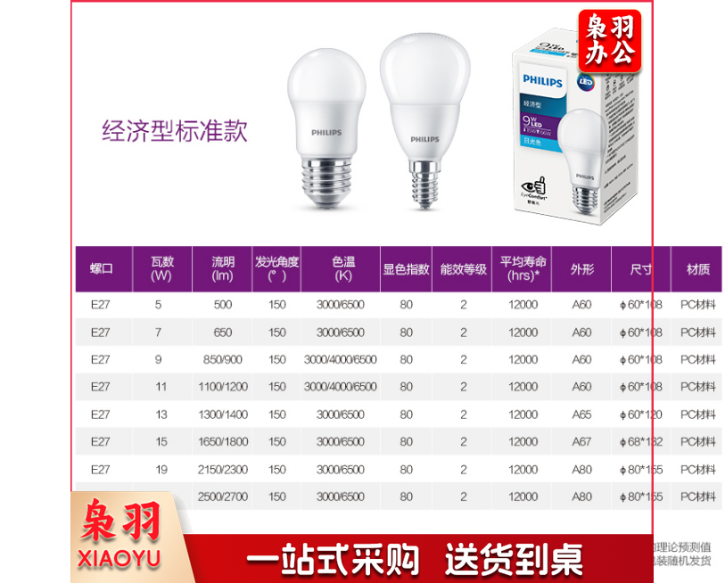 飞利浦 LED灯泡节能球泡灯大螺口E27 经济型灯泡13W