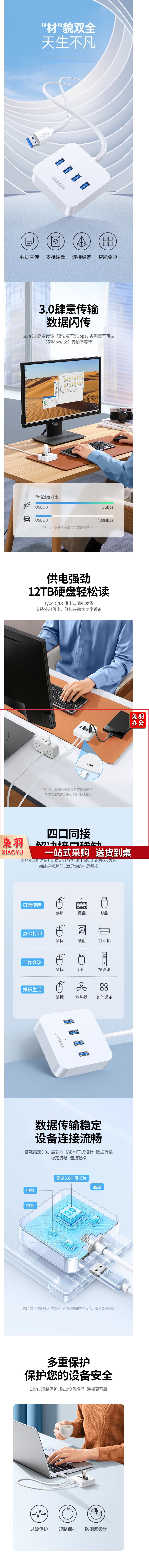 绿联 CR118 USB3.0分线器 高速4口拓展坞 USB集线器 电脑一拖四多接口转换器转接头延长线 1米 30202