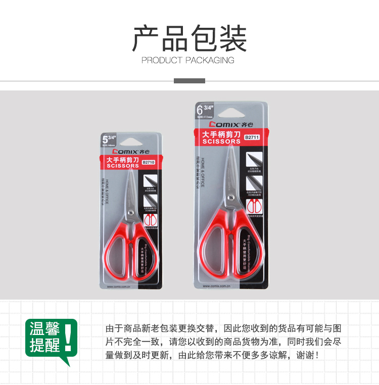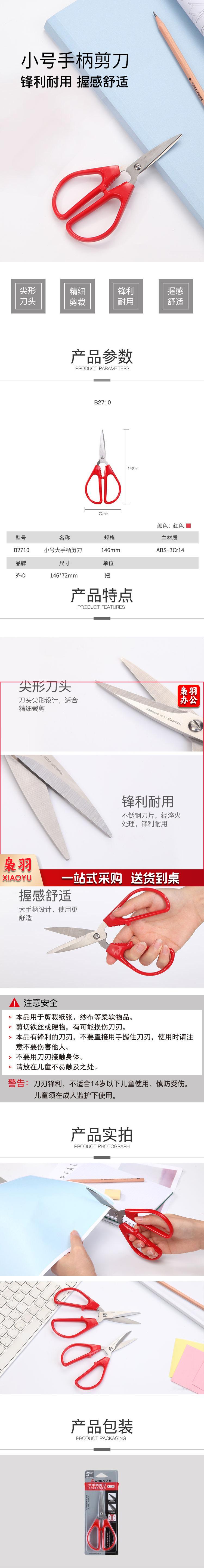 齐心/COMIX B2710 小号大手柄剪刀 办公文具146mm 红色 单位:把