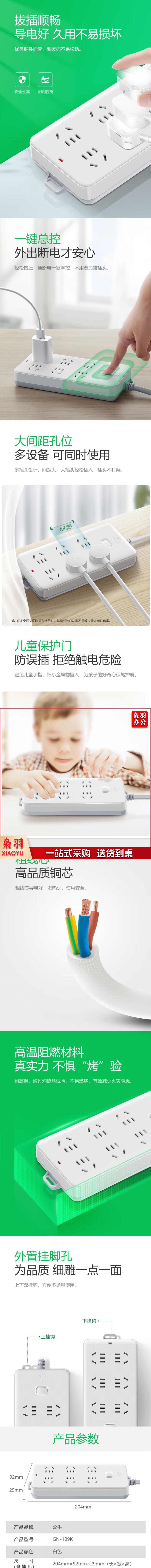 公牛 GN-109K 6位总控1.8米多位插座移动插排多位插座排插接线板