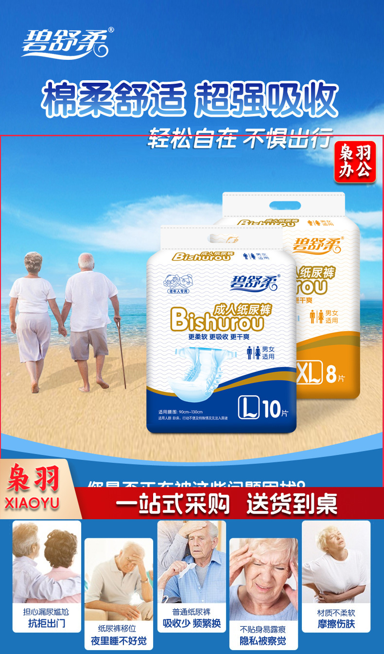 碧舒柔成人纸尿裤老年人尿不湿一次性男女产妇(L码10片)