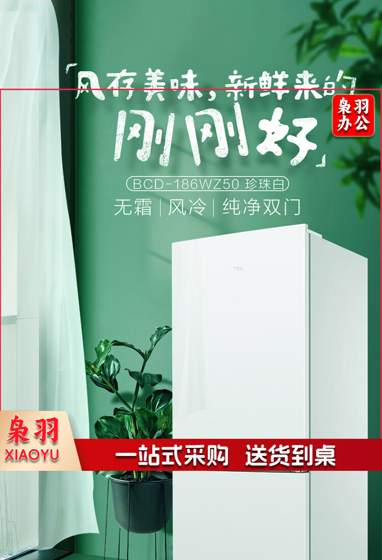 TCL 186升双门养鲜冰箱节能环保风冷无霜冰箱 小型冰箱 迷你电冰箱 便捷电子温控冰箱BCD-186WZA50