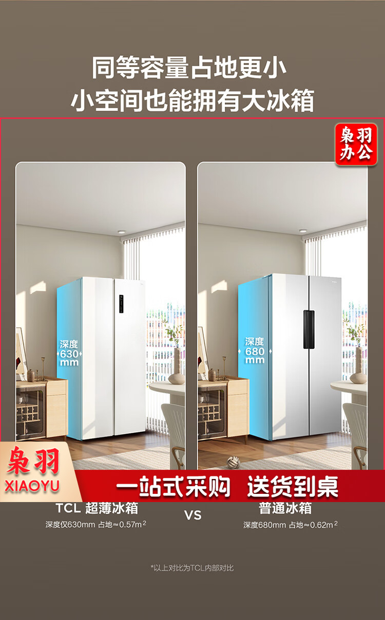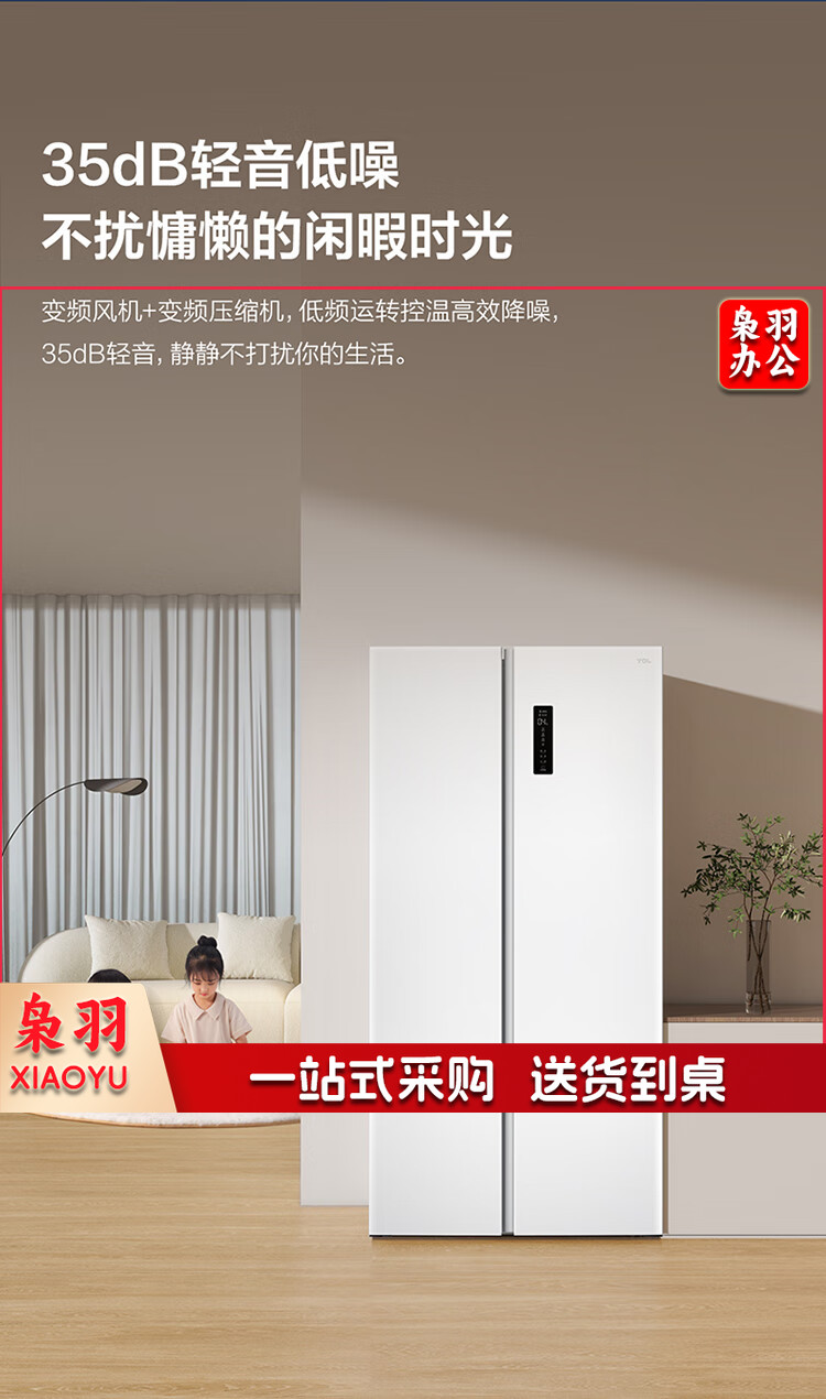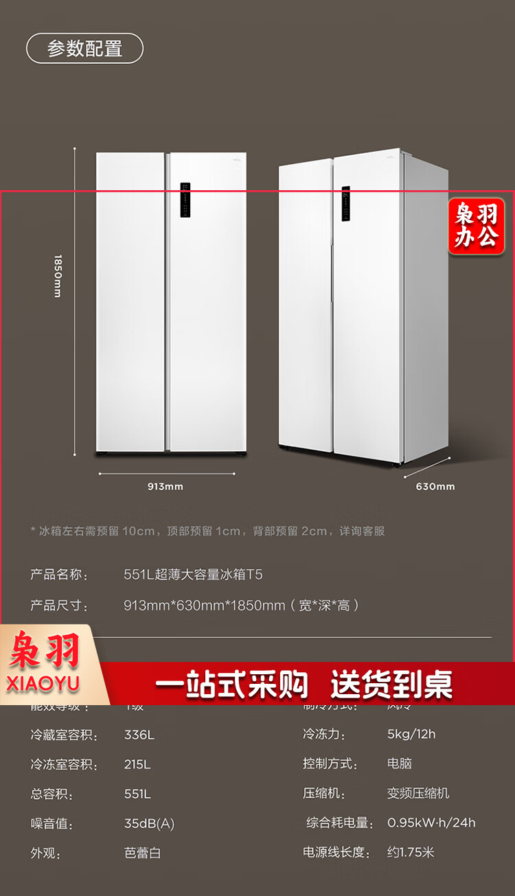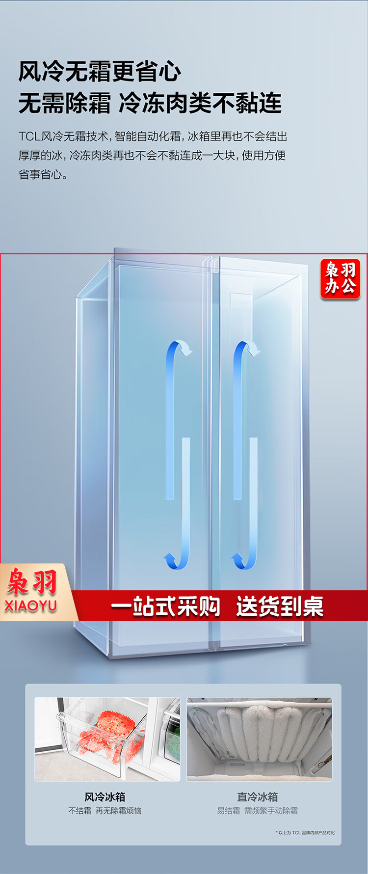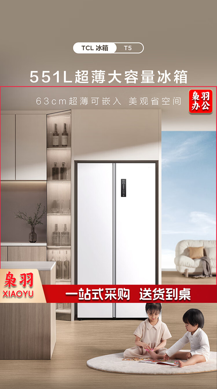 TCL 63CM超薄嵌入551升大容量对开双开门两门冰箱除菌净味一级能效风冷无霜家用电冰箱R551T5-S