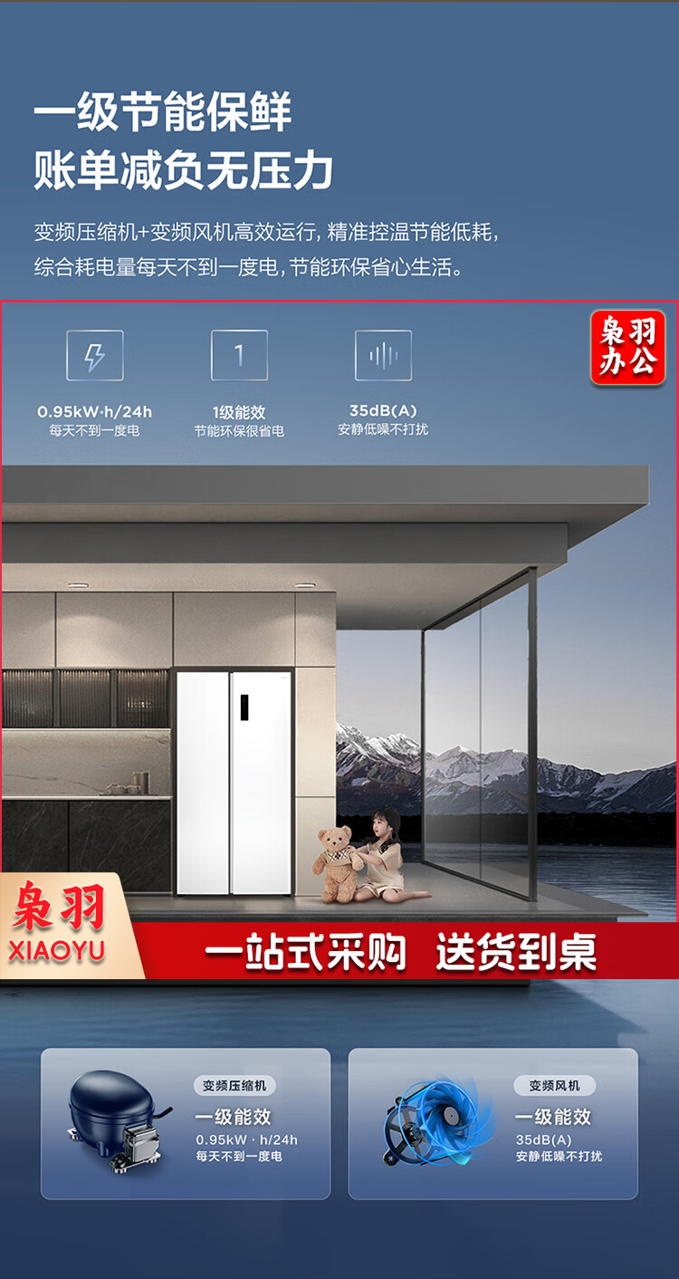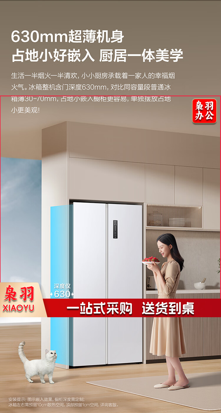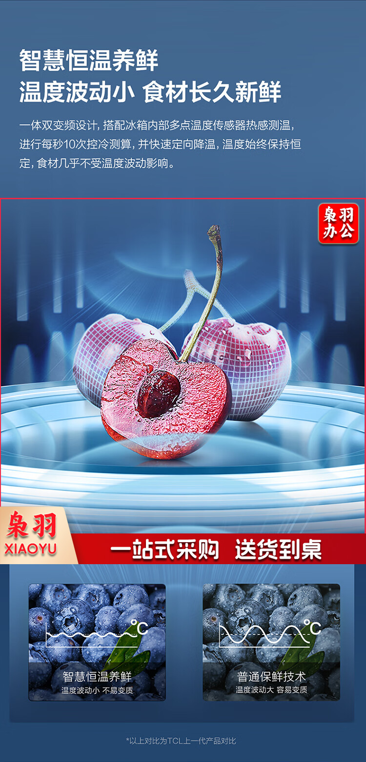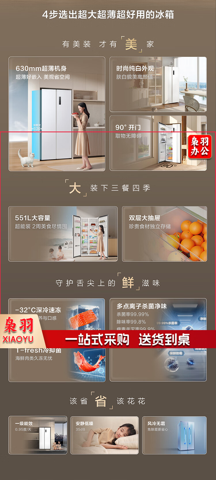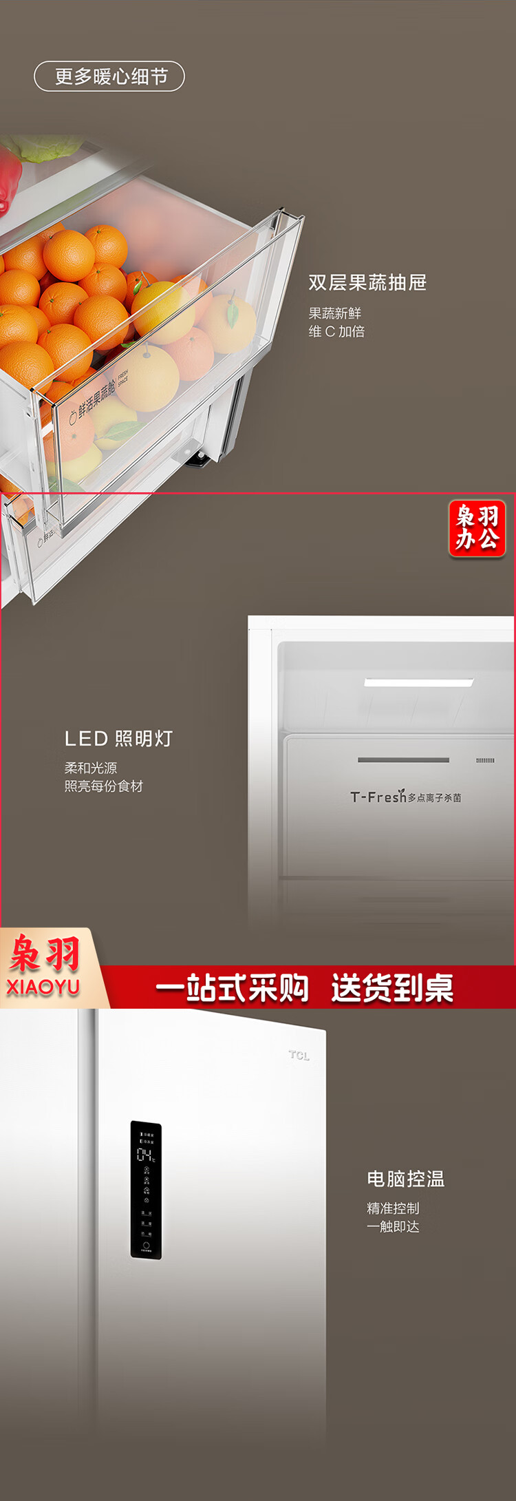 TCL 63CM超薄嵌入551升大容量对开双开门两门冰箱除菌净味一级能效风冷无霜家用电冰箱R551T5-S