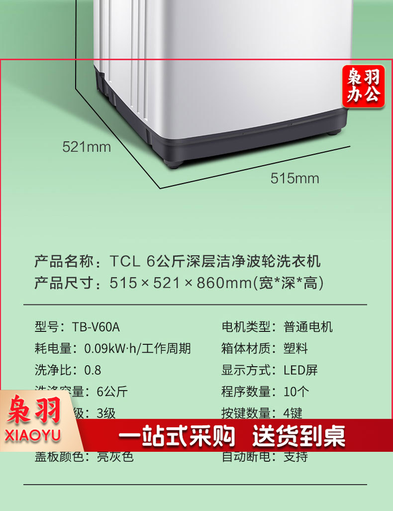TCL6公斤 全自动波轮小型洗衣机 一键脱水 24小时预约 洗衣机小型便捷TB-V60A亮灰色