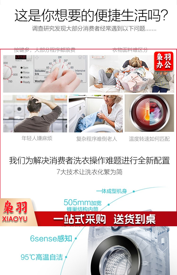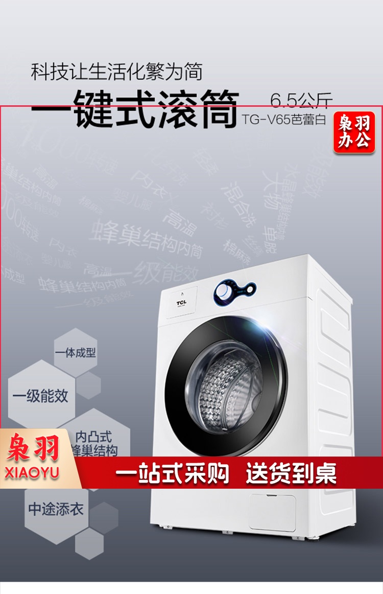 TCL TG-V65 TCL6.5公斤一键操作 全自动滚筒洗衣机