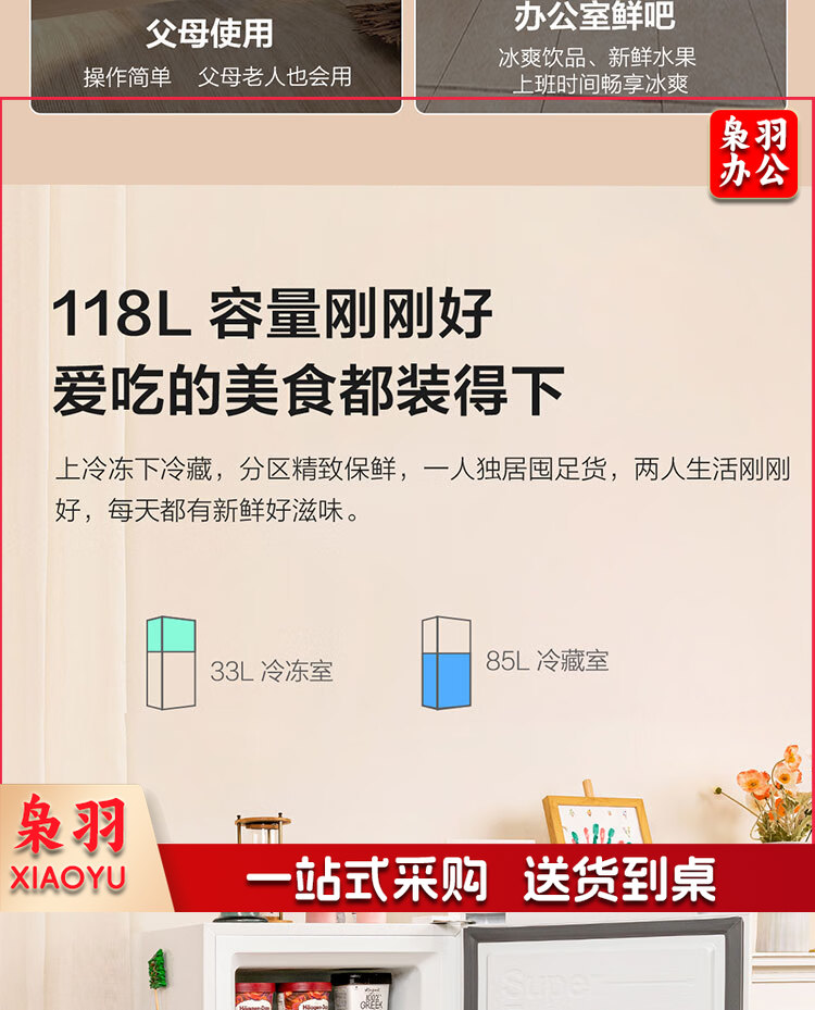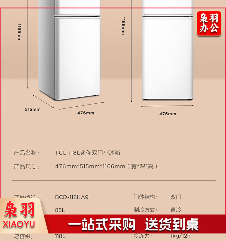 TCL 118升双开门两门二门养鲜冰箱小户型小型家用电冰箱迷你租房办公室LED照明节能冰箱BCD-118KA9